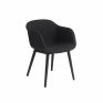 Spisebordsstolen Fiber fås her med eller uden armlæn, og med et stel i egetræ eller aluminium
