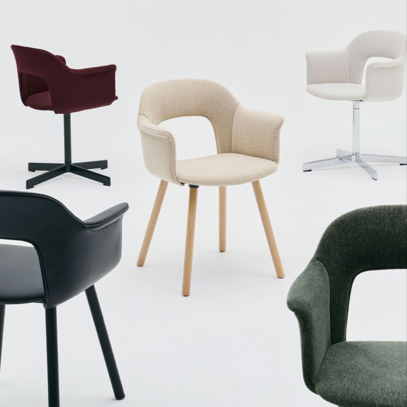 Layout Armchair 221 Designet af Julien Renault med fokus på komfort, funktionalitet og bæredygtighed. Skal i min. 96% genanvendt plastik i flere farver og afrundede træben for stabilitet og tidløst udtryk. Alle dele kan adskilles for lang levetid. Ideel til kontor, restaurant, institutioner og hjem.