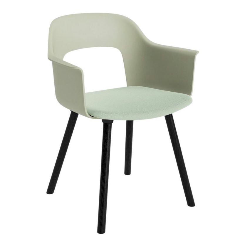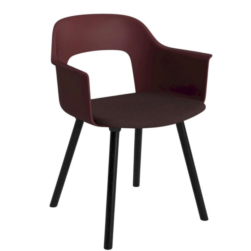 Layout Armchair 223, designet af Julien Renault med fokus på komfort, funktionalitet og bæredygtighed. Skal i min. 96% genanvendt plastik, polstret sæde i stof eller olivenblad-garvet læder, og afrundede træben for stabilitet og tidløst udtryk. Alle dele kan adskilles for lang levetid. Fås i flere farver og materialer ideel til kontor, møderum og hjemlige miljøer.