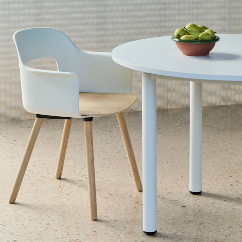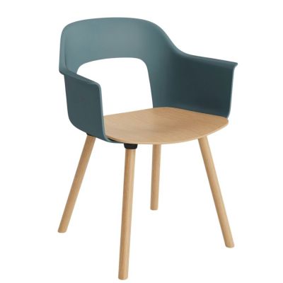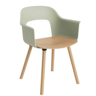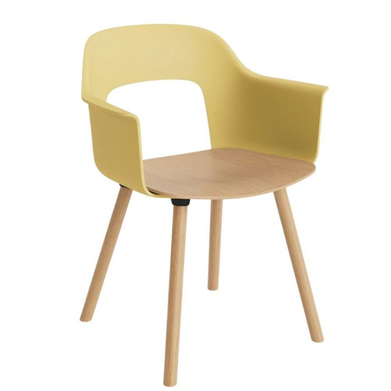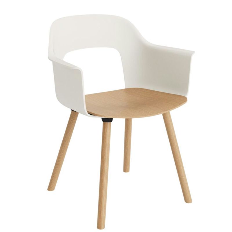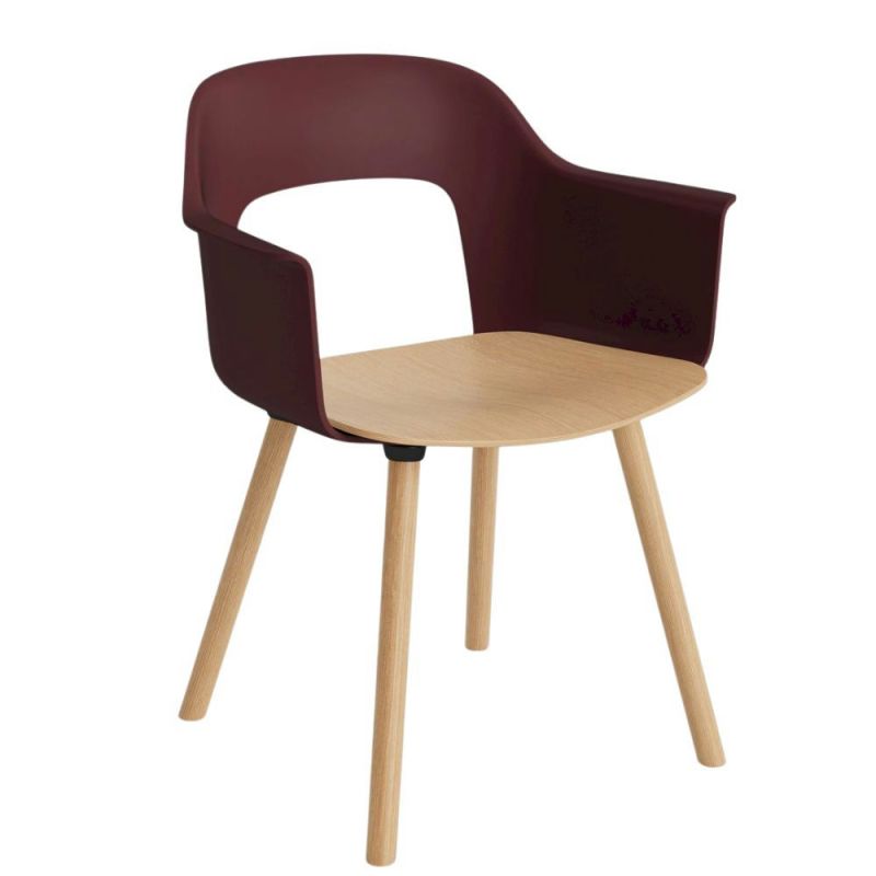 Layout Armchair 222 Design af Julien Renault med fokus på komfort, funktionalitet og bæredygtighed. Skal i min. 96% genanvendt plastik, sæde i finér og afrundede træben, der giver stabilitet og et tidløst udtryk. Alle dele kan adskilles for længere levetid og mulighed for renovering. Fås i flere farver og trætyper ideel til kontor, restauranter, institutioner og hjemlige miljøer.