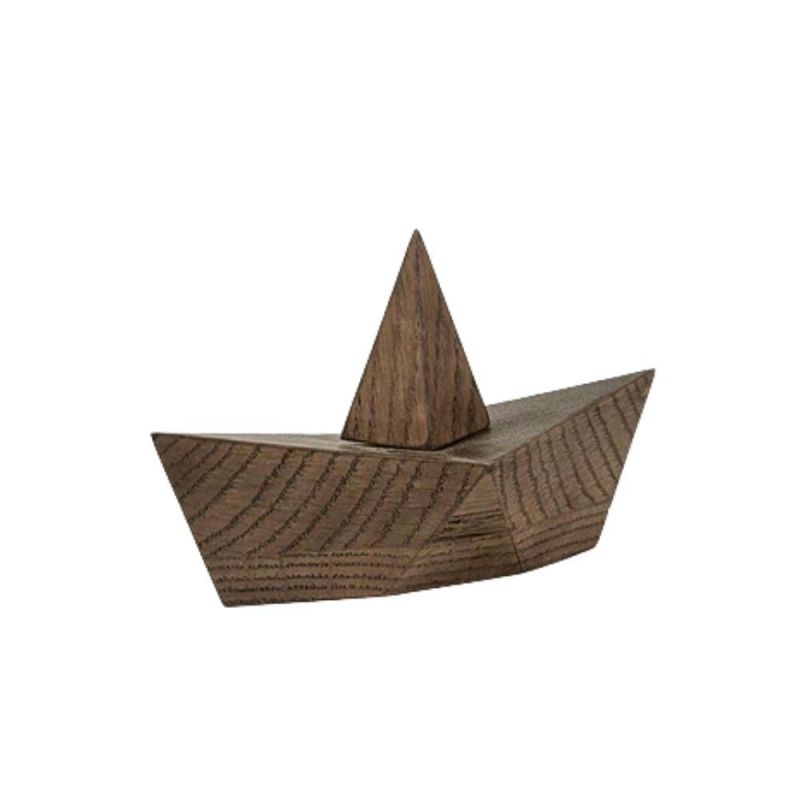 Admiral, papirbåden i træ. En hyldest til barndommens kreative papirbåde, her fortolket i massiv, røgfarvet eg. Udstyret med skjult magnet, der holder sejlet på plads et stilrent designobjekt med nostalgisk charme.