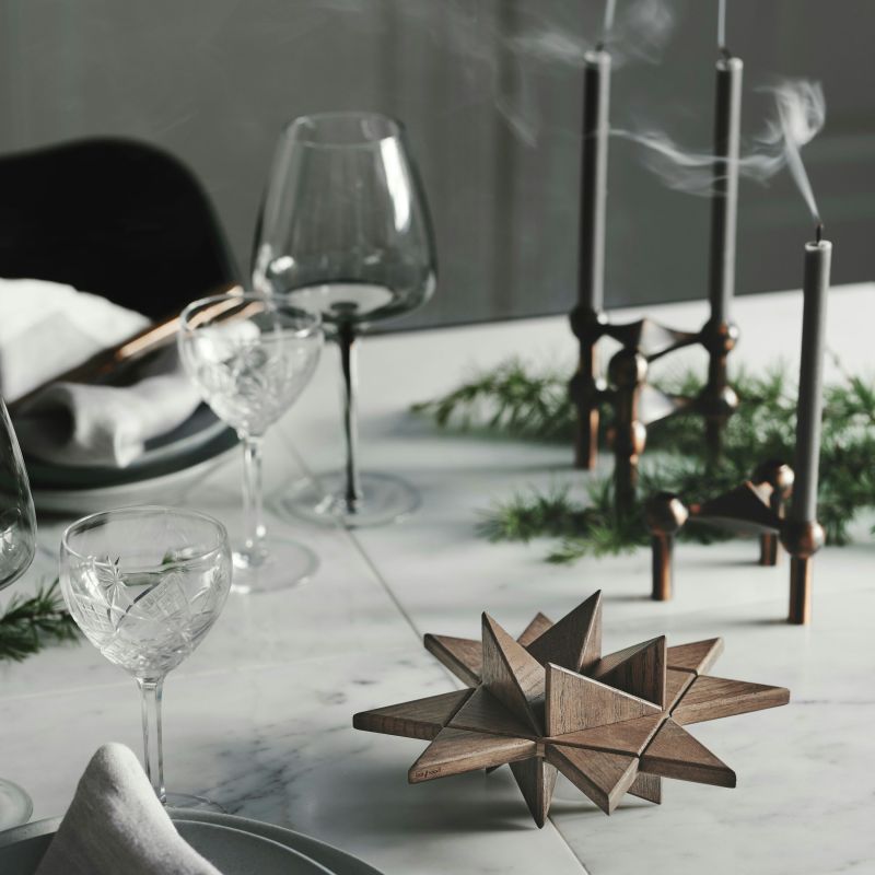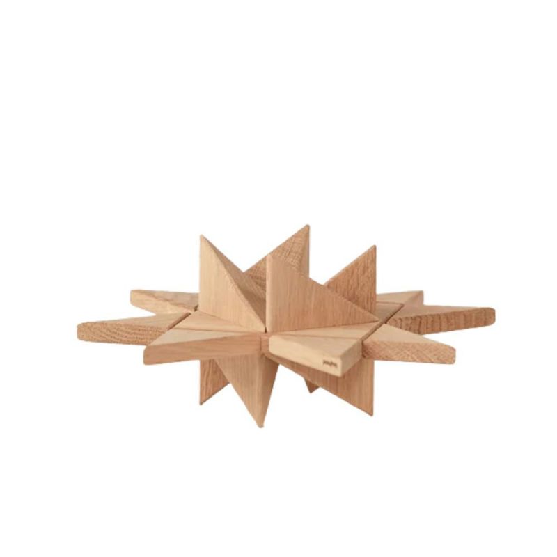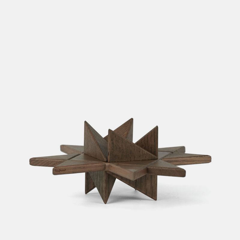 Fröbelstjernen, en elsket juleklassiker, inspireret af de flettede papirstjerner fra barndommen. Her udført i massiv eg med bløde kanter perfekt til vindueskarmen eller som pynt på julebordet.