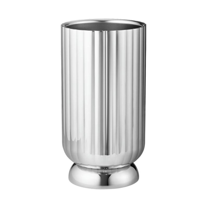 Denne vinkøler i rustfrit stål er ideel, når du har gæster, og giver borddækningen et unikt strejf med Bernadotte kollektionens riflede signaturdesign i art deco-stil. Vinkøleren er fremstillet med en dobbeltvægget struktur, som holder vinen kølig i længere tid. Et design, som elegant kombinerer form og funktion.