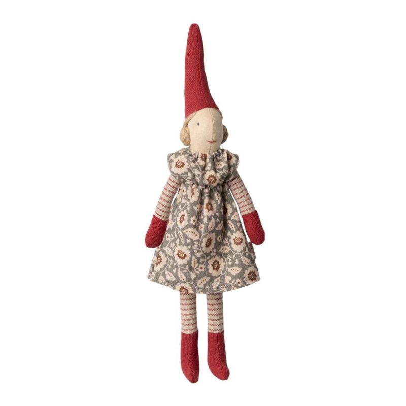 Mailegs nissekollektion byder på forskellige stilarter i smukt juletøj af eksklusive materialer. De er søde og kan mikses på tværs af størrelser og kollektioner. Størrelse 1 har magnet i hænder og venstre fod.