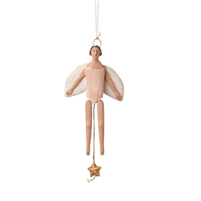Tilføj en magisk detalje til julepynten med denne håndlavede engel. Med sprællemandsfunktion, håndmalede detaljer og bløde farvetoner bringer den varme og charme til dit juleunivers.