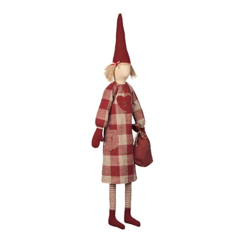 December er fuld af familietraditioner, og denne kalendernisse kan blive din næste. Adventskalenderen har 4 ringe/lommer til de små overraskelser - en til hver af de 4 sidste søndage før jul. Den har en strop i nakken, så den er nem at hænge op.