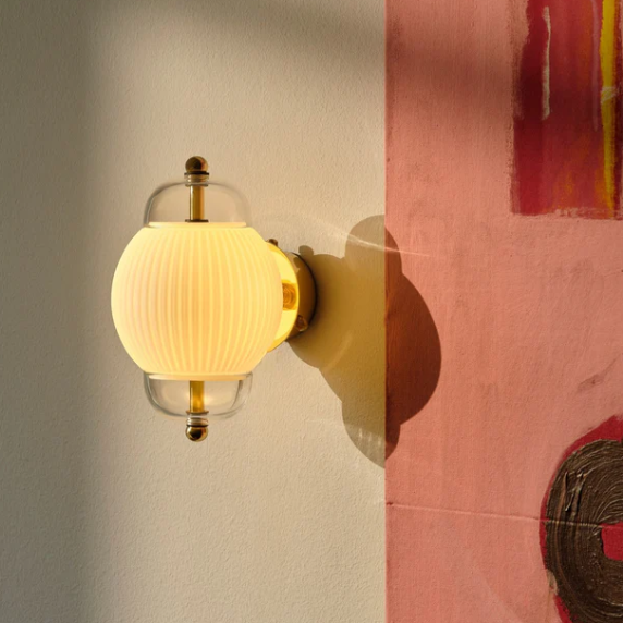 • Materialer: mundblæst glas, poleret messing, tekstilledning
