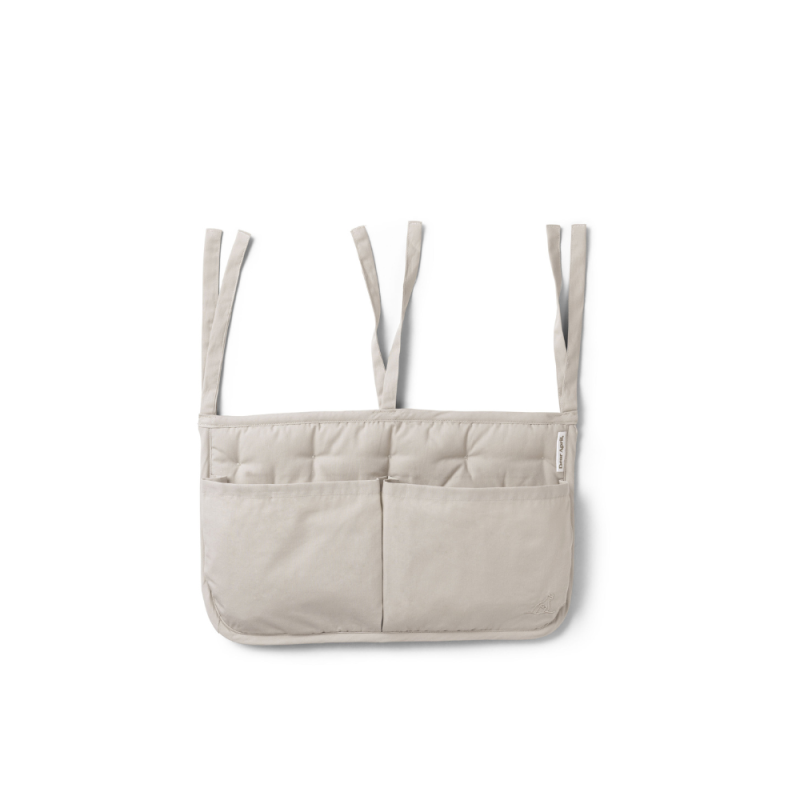 Vores skønne quiltede sengelomme er dekorativ og praktisk til opbevaring af yndlingsbamsen, den lille bog eller sutterne. Fastgøres nemt til sengen med fine bindebånd.