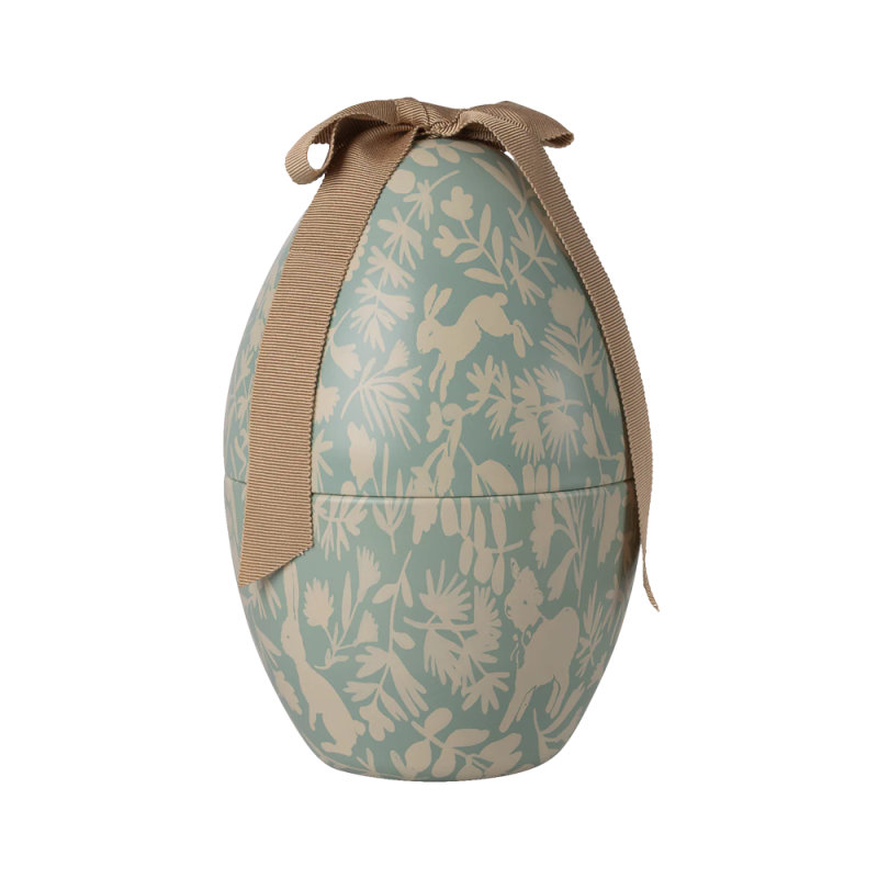 Metal påskeæg med et smukt print. Tag et ekstra kig på printet og se om du kan få øje på de forskellige dyr. Ægget kommer med en stor blød sløjfe på toppen, som giver ægget et eksklusivt look.
