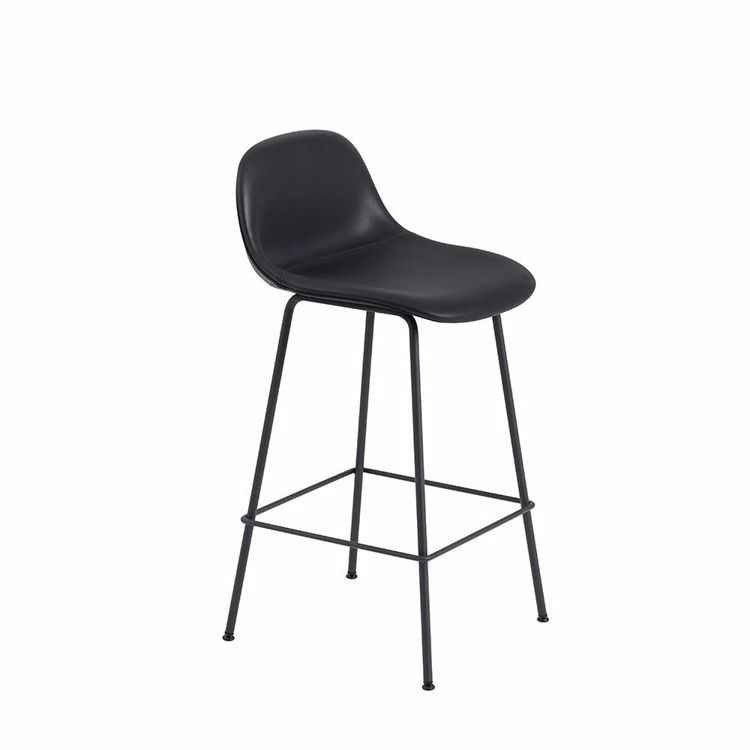 Muuto Fiber Barstol Sort Refine Læder Stål Ryglæn | Muuto Variant: 65 cm