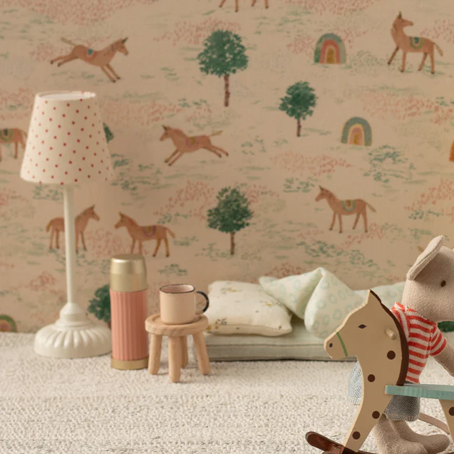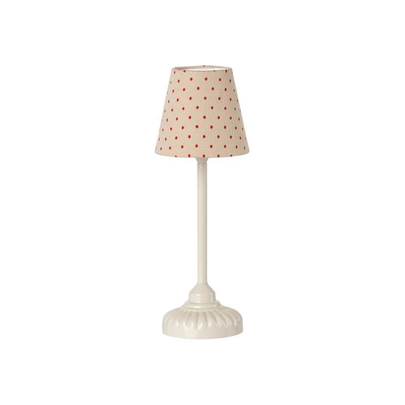 Mailegs vintage gulvlampe er et stemningsfuldt tilbehør, der spreder et blødt lys i rummet. Husk at slukke, når musene går i seng. Leveres uden batteri passer til knapcellebatteri (CR2032).