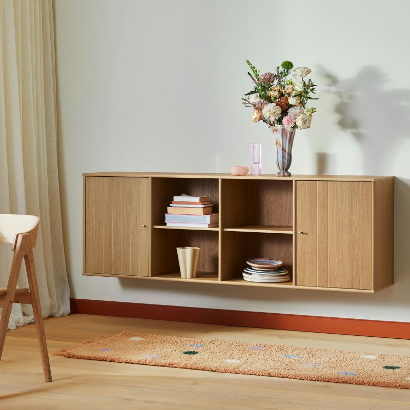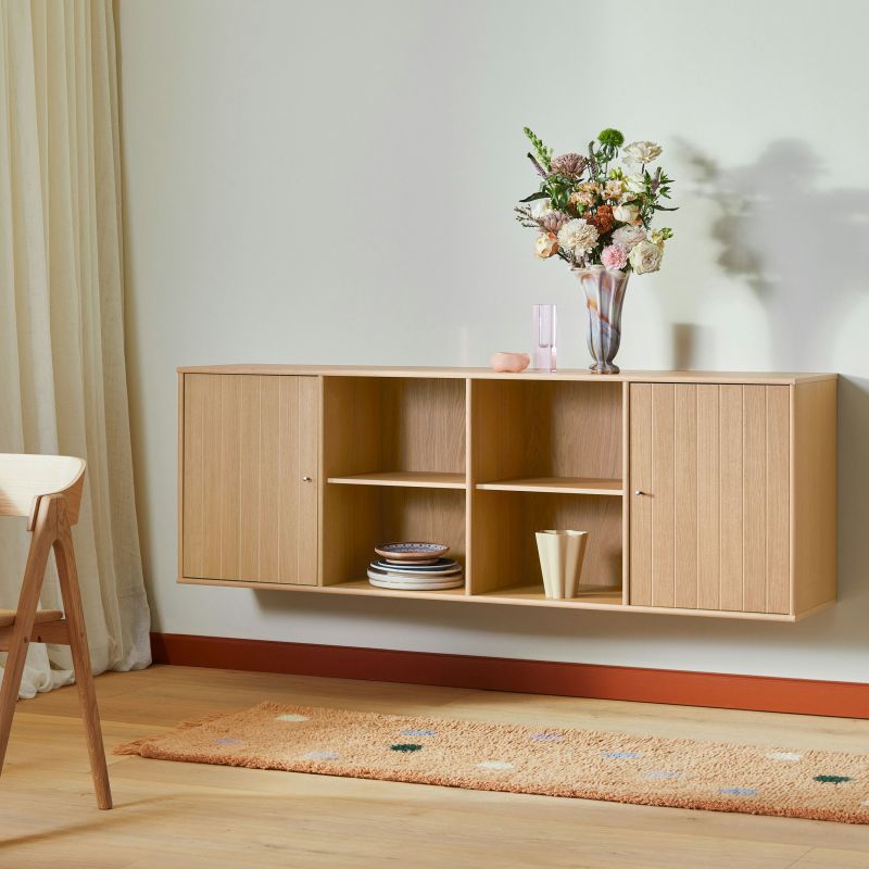 Skænk/skab fra Mistral i tidløst design med en kombination af åbne rum og låger. Kombinér med andre moduler fra Mistral serien for at skabe en rød tråd i indretningen. Mistral produceres på Hammel Furnitures egen fabrik i Danmark.