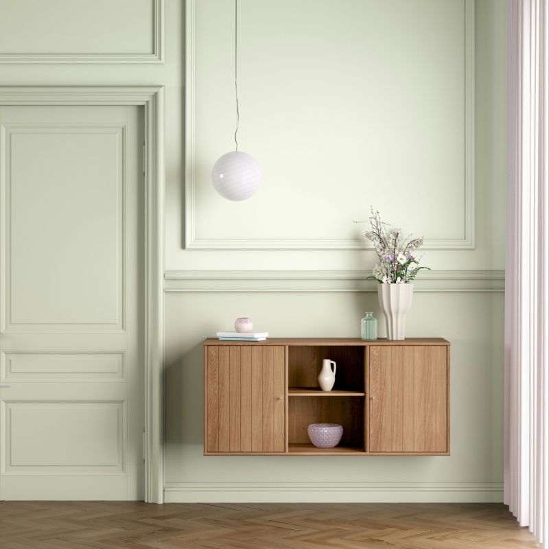 Skænk/skab fra Mistral i tidløst design med en kombination af åbne rum og låger. Kombinér med andre moduler fra Mistral serien for at skabe en rød tråd i indretningen. Mistral produceres på Hammel Furnitures egen fabrik i Danmark.