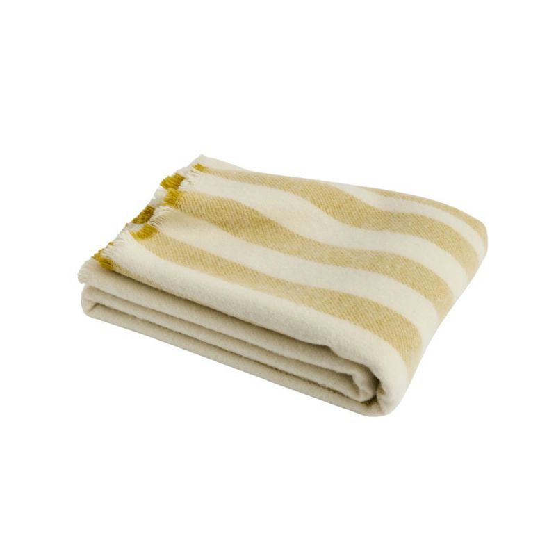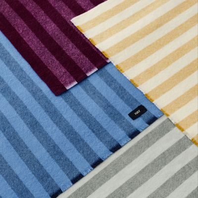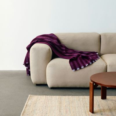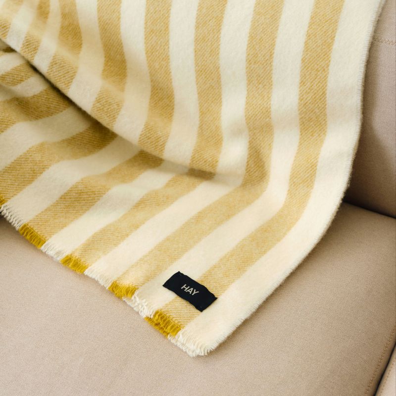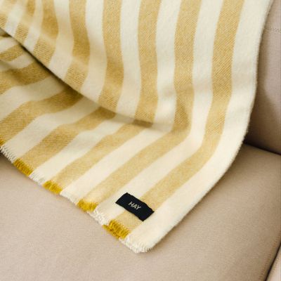 Duo Plaid Uldplaid med striber. Duo Plaid fra HAY er vævet i blød, ren uld med en let børstet overflade, der giver en behagelig og lun følelse. Det markante stribede design og de dekorative frynser tilfører både varme og personlighed til sofaen, lænestolen eller sengen. Fås i flere farvekombinationer, der bringer farve og tekstur ind i indretningen.