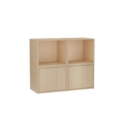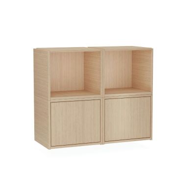 Dette er Bricks system C. Bricks er formet af fem FSC®-certificerede egetræssider, der er sammensat i forskellige niveauer, hvilket gør det muligt at stable elementerne oven pa hinanden i en selvlasende konstruktion. Det klassiske modulære opbevaringssystem består af individuelle kuber, der enten kan monteres på væggen eller placeres på en gulvsokkel. Skab en rumdeler, vægophængt bogreol eller vend kuben pa højkant som et sidebord.