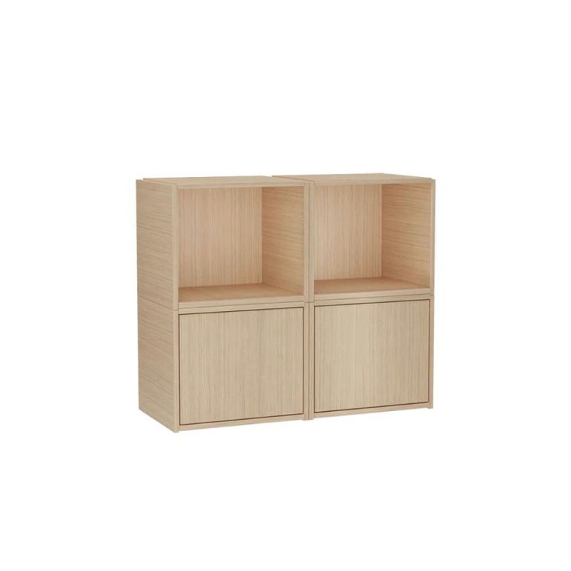 Dette er Bricks system C. Systemet inkluderer: 2 x åbne Bricks cubes, 1 x Bricks cube med dør til højre, 1 x Bricks cube med dør til venstre og 2 x Bricks vægbesalg