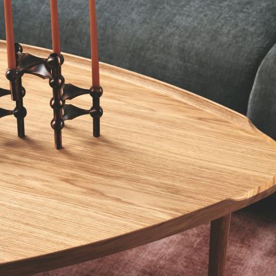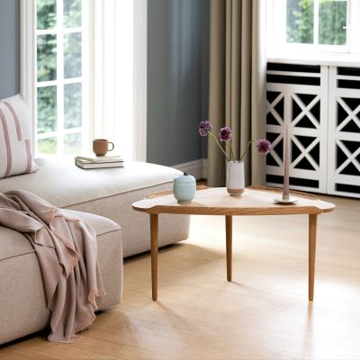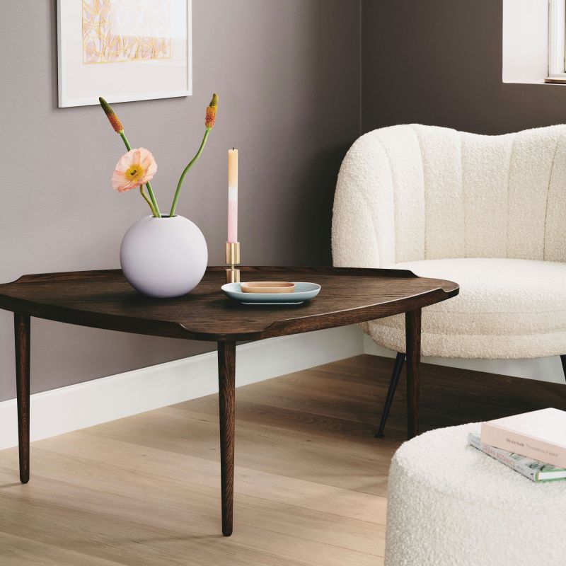 Coffee Table No.55 blev designet af Jørgen Aakjær Jørgensen i 1950erne. Med sin trekantede form, bløde hjørner og skarpe linjer fremstår det som rummets centrum både elegant og minimalistisk.