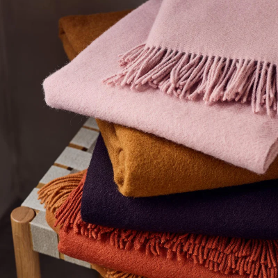 Season-plaiden er vævet i 100 % ren lammeuld, der omhyggeligt er udvalgt til plaiden. Valget af materiale sikrer en blød og behagelig overflade samt uldens naturlige varme og isoleringsevne.