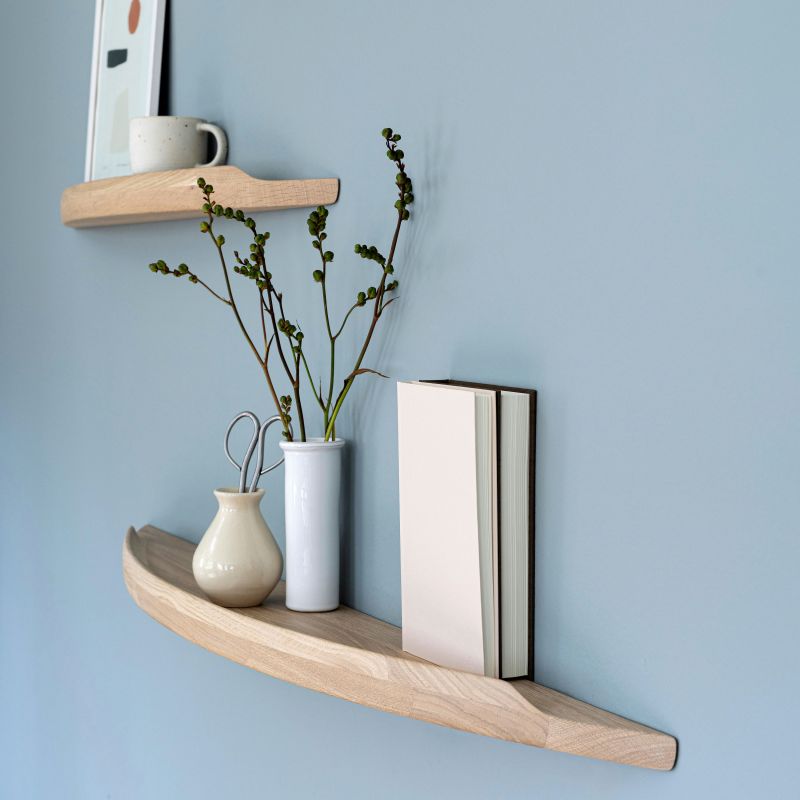 Arcus Shelf er designet af Nanna Aakjær Svendsen med inspiration fra hendes morfar, Jørgen Aakjær Jørgensen. Hylden er skabt som et funktionelt kunststykke og fås i tre størrelser med mange anvendelsesmuligheder.