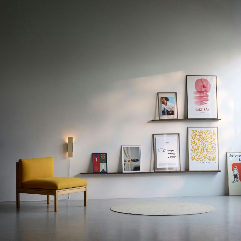 Gallery Shelf er et enkelt stykke massivt egetræ, der giver dig mulighed for at skabe en gallerivæg med minimal indsats. En smal rille løber langs hyldens længde for at holde dine rammer på plads perfekt til at udstille dine yndlingskunstværker og personlige genstande.