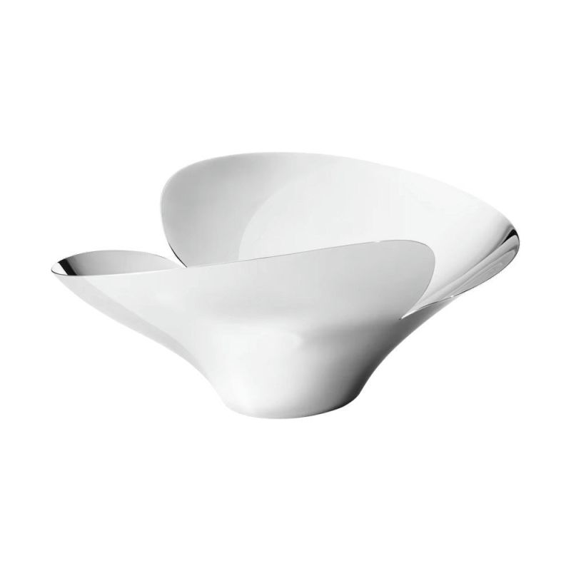 Denne skål er fra den populære Bloom kollektion, designet af den danske keramiker Helle Damkjær. Skålen bærer seriens organiske signaturformer, inspireret af en blomst, der springer ud, og den er fremstillet i blankpoleret rustfrit stål. Et skulpturelt stykke design til hverdagen, der er smukt i sig selv eller som frugtskål.