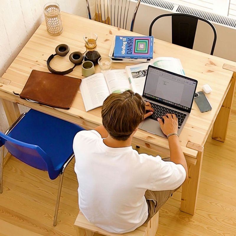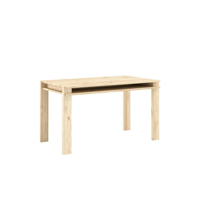 Tuck Dining Table fra C.F. Møller forener æstetik og funktion i et kompakt bord med dobbelt bordplade og skjult opbevaringsrum perfekt til bøger, laptop og hverdagens småting. Det minimalistiske design i massivt, ubehandlet fyrretræ fremhæves af åbne samlinger og fine detaljer, der vidner om solidt håndværk. Plads til op til seks personer ideelt til både arbejde og samvær.