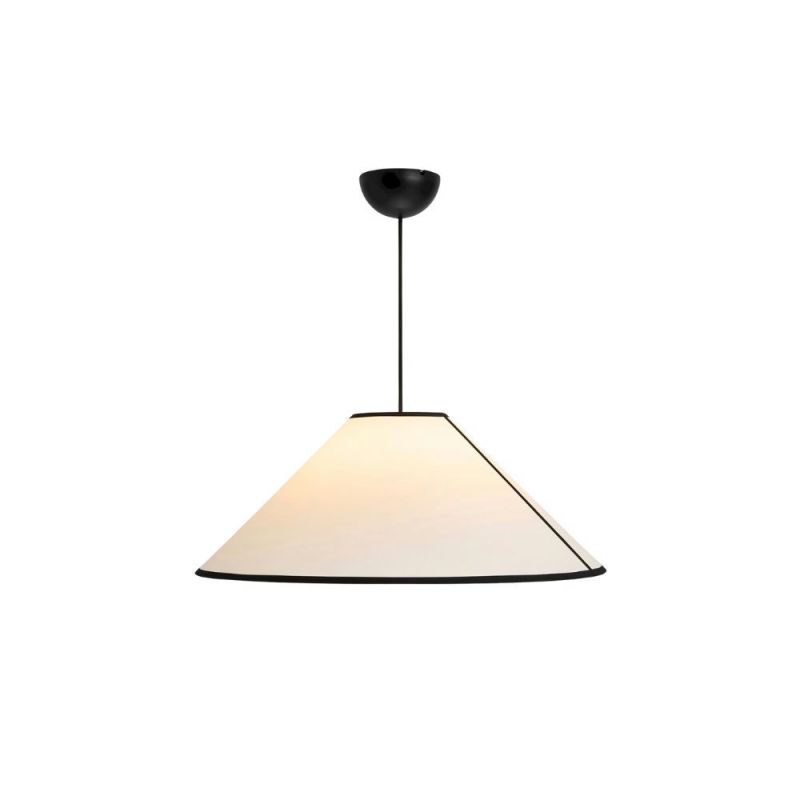Ava Cone Pendellampe designet af Ana Kra for HAY. Moderne fortolkning af den klassiske empire-pendel med kegleformet, semi-transparent skærm i ECOPET (genbrugt PET-plast) og kontrastfuld stofkant. Lampen giver blødt, stemningsfuldt lys og passer perfekt til soveværelser, gange, stuer og spisestuer. Leveres med HAY Common Cord Set og anvender udskiftelig, dimbar LED-pære.