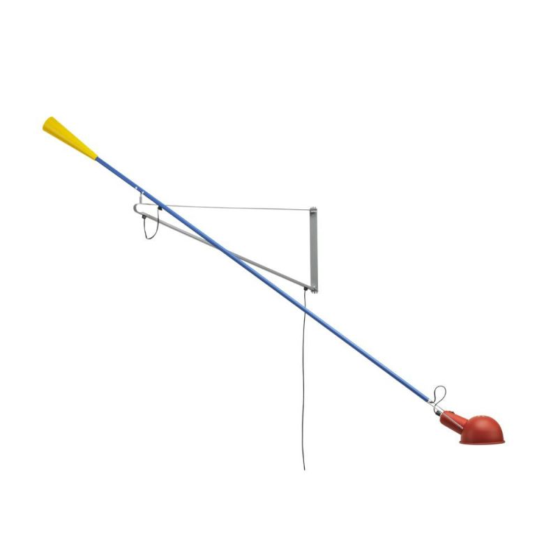 Smuk væglampe med direkte belysning. Justerbar arm og reflektor i malet stål. Reflektorstøtte i krombelagt messing. Konisk modvægt i støbejern. Vægbeslag i malet stål.