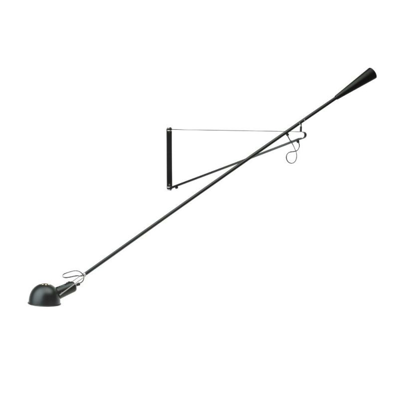 Smuk væglampe med direkte belysning. Justerbar arm og reflektor i malet stål. Reflektorstøtte i krombelagt messing. Konisk modvægt i støbejern. Vægbeslag i malet stål.