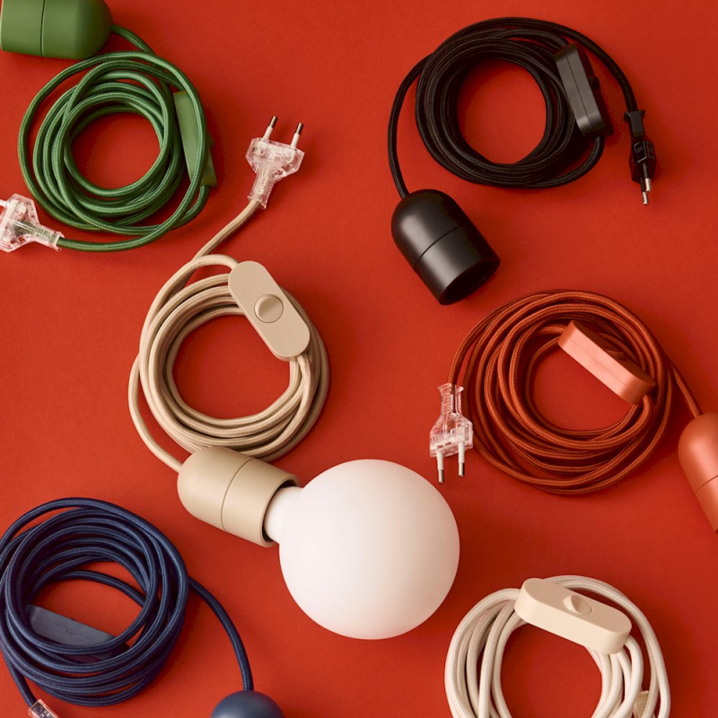 Common Cord Set er et alsidigt ledningssæt med matchende komponenter i samme farve og er kompatibelt med mange HAY-lampeskærme Kan også bruges alene med en E27- eller E26-pære. Vælg mellem flere farver for at skabe en funktionel og dekorativ belysningsløsning. Pære medfølger ikke.