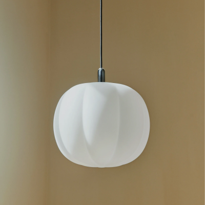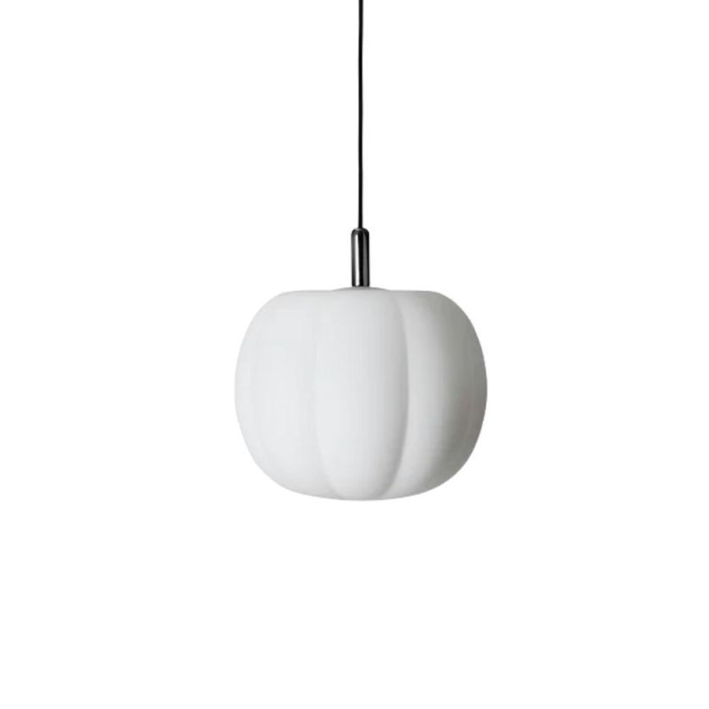 PePo Lamp er inspireret af græskar og udført i mundblæst glas, hvilket skaber et organisk og indbydende design. Lampen har en traditionel funktion, men dens form omfavner bløde bølger og bevægelser, som sjældent ses i glaslamper. Den legende reference til græskarsilhuetten og det gentagne mønster giver lampen et alsidigt udtryk fra alle vinkler, mens stilken tilfører et sjovt og ikonisk element.