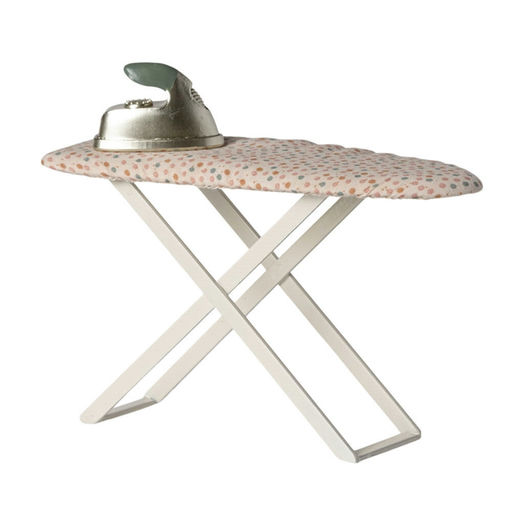 Et vaskerum er ikke komplet uden et strygejern og strygebræt. Brættet, lavet af metal og dækket med Maileg stof, passer perfekt til musefamilien og gør legen endnu mere realistisk.