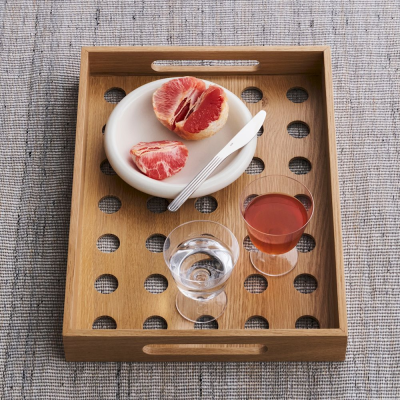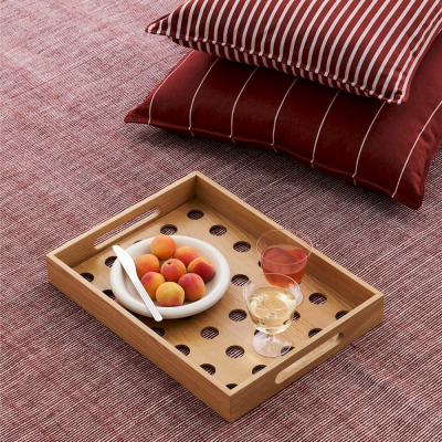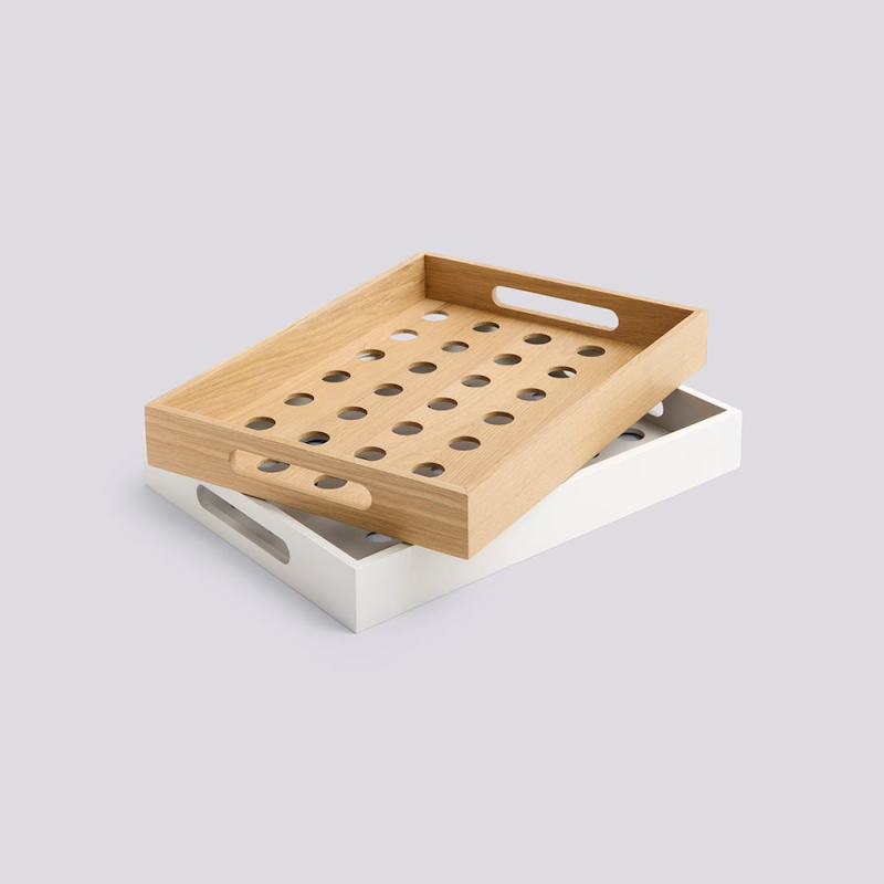 Terrazza Dot Bakke kombinerer funktion og æstetik med sit perforerede design, høje sider og praktiske udskårne håndtag. Bakken er perfekt til servering, transport eller opbevaring både indendørs og udendørs.