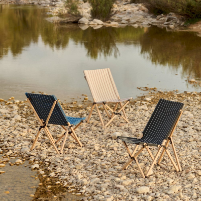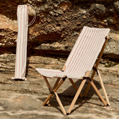 Outdoor Market Foldestol er en del af HAY Outdoor Market Shop designet af Jasper Morrison og er en let og fleksibel siddemøbel-løsning til udelivet. Stolen har et let stel i bøgetræ og et sæde i stribet, genanvendt polyester, som kombinerer komfort med et afslappet, æstetisk udtryk. Den er nem at folde sammen og tage med perfekt til have, terrasse, strand eller picnic. Fås i flere farver og leveres med en matchende stofpose til praktisk opbevaring og transport.