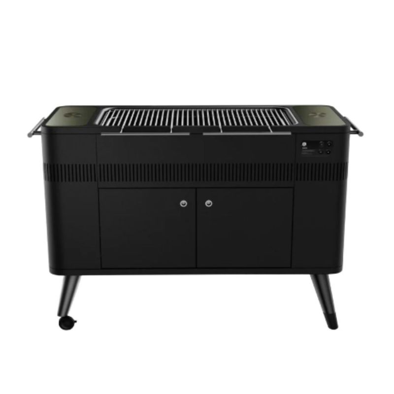 Everdure HUB II EU - Sort er en eksklusiv kulgrill med Fast Flame Ignition, Rotiscope Technology, berøringskontrol til justering af rotisseriets højde, smart opbevaring og et elegant titanium-look det ideelle valg til dig, der vil grille med stil og gøre udendørs madlavning nem og imponerende.