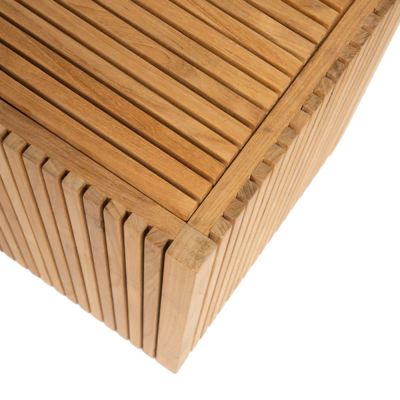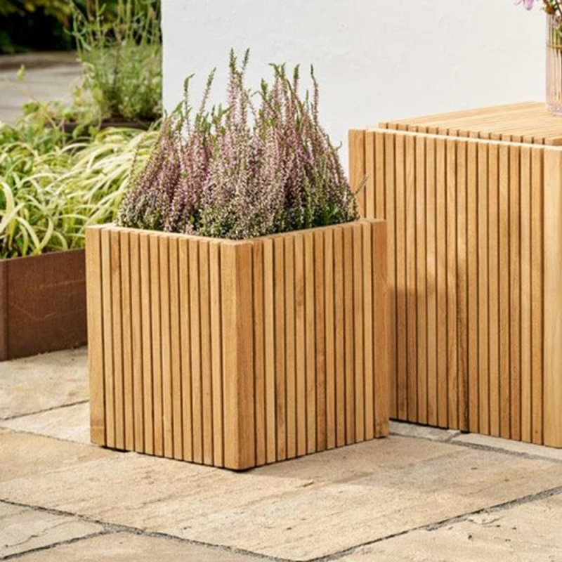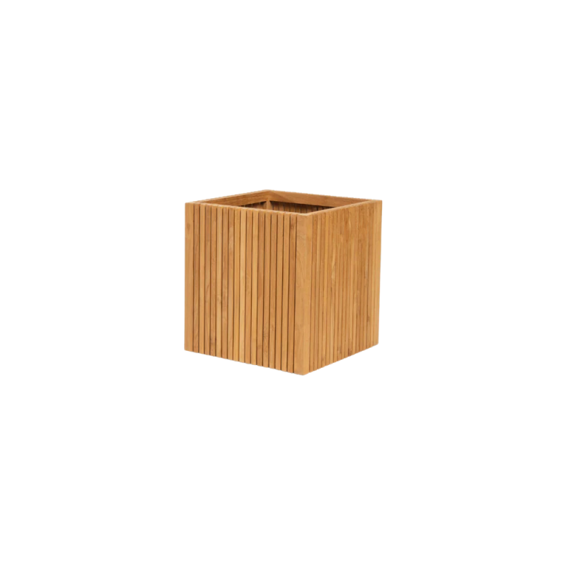 Planteskjuler i klassisk dansk design leveres usamlet og er fremstillet af lange, smalle lameller i teaktræ. Når samlet, fungerer den som en stilren skjuler til planter ude såvel som inde. Vend den på hovedet, fjern den løse bund, og du har et lille bord, der passer perfekt til sidebord til loungestolen, i stuen eller soveværelset. Den kan også anvendes som opbevaringskasse. Designet kombinerer æstetik og funktionalitet med flotte rene linjer.
