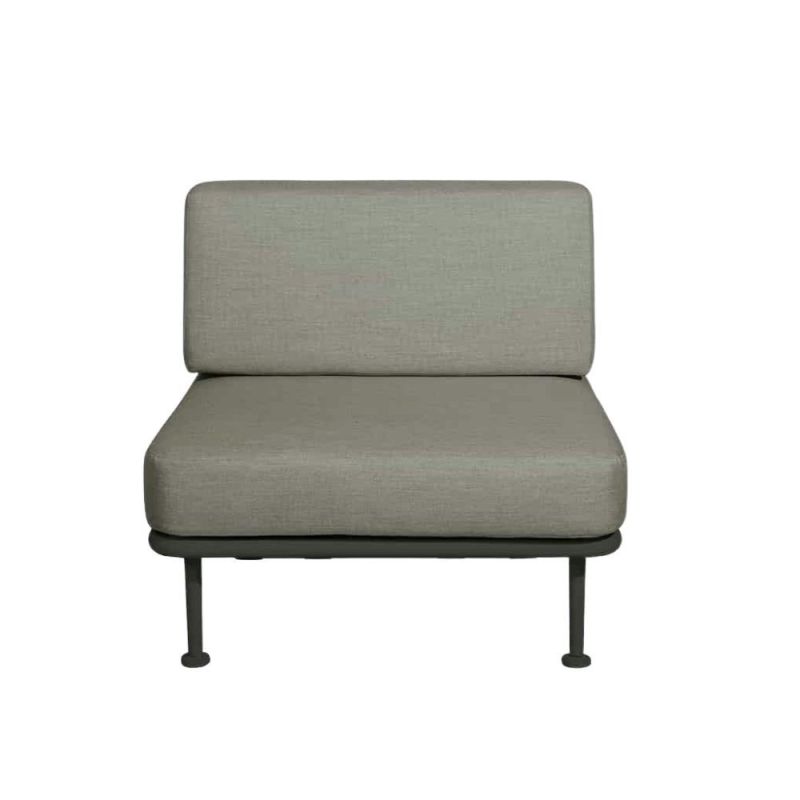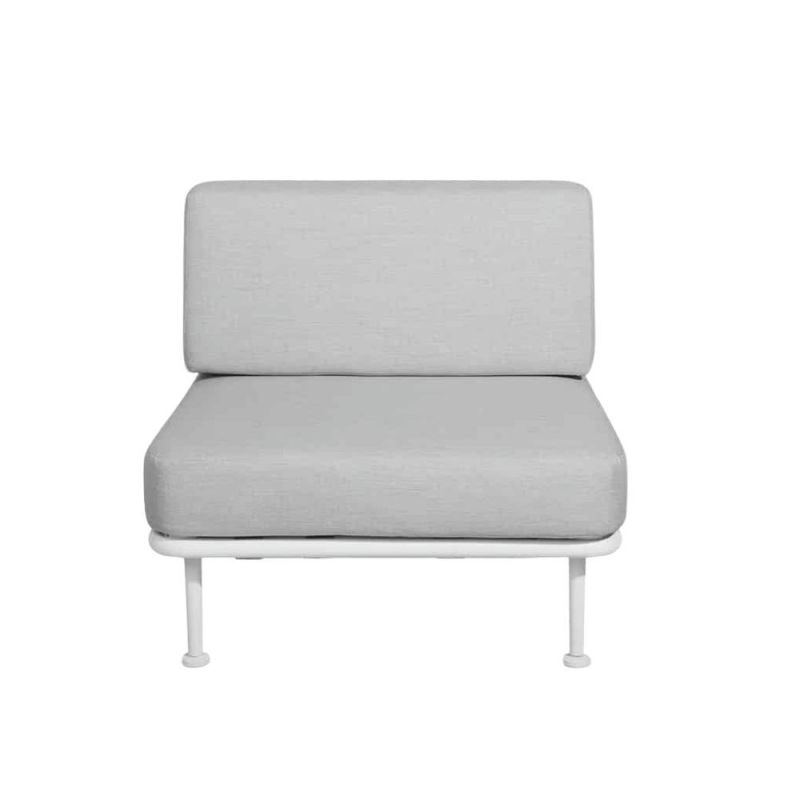 Mindo 100 Single-modul imponerer med sin alsidighed og funktionalitet. Brug det som en elegant tilføjelse til din modulsofa for ekstra siddeplads, eller lad det stå alene som en stilfuld loungestol. Hynderne er betrukket med slidstærkt outdoor-stof, der modstår vind og vejr, mens den bløde polstring sikrer komfort uden at gå på kompromis med holdbarheden. Et modul, der både tilpasser sig og løfter din udendørs indretning.