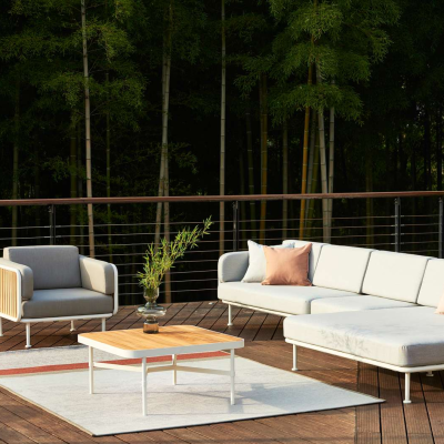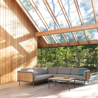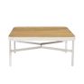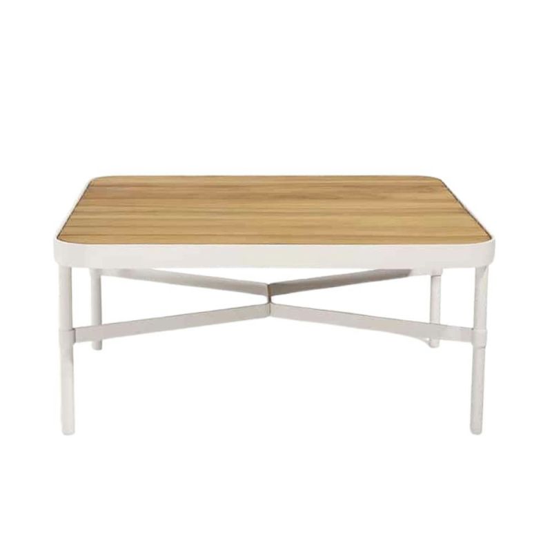 Mindo 100 Kvadratisk Sofabord med teak-top og elegant aluminiumsramme er ideelt til hjørnesofaer eller større loungeopstillinger, især når det kombineres med mindre runde sideborde. Det er både holdbart og stilfuldt, og passer perfekt ind i enhver udendørs indretning.