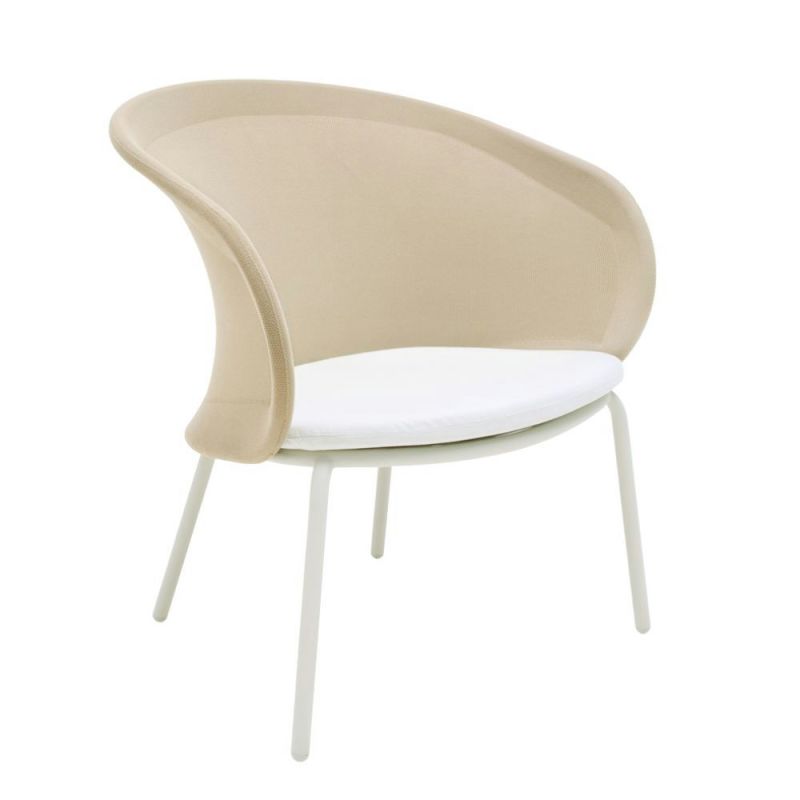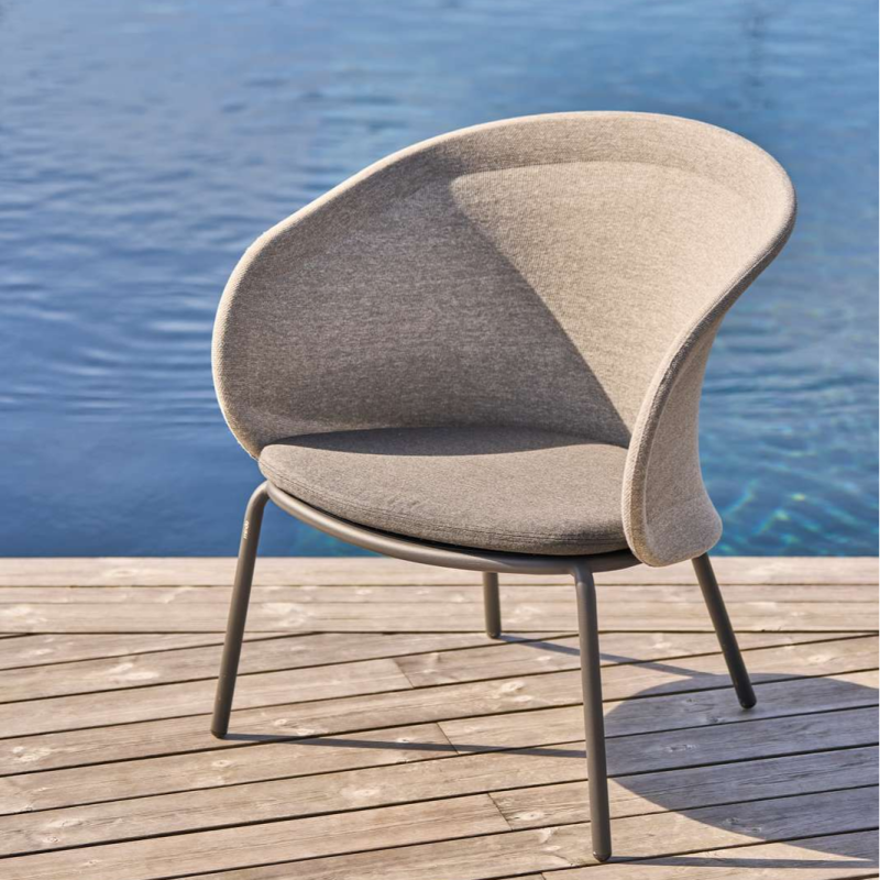 Mindo 114 Lounge Chair byder på en stor, buet ryg og er fremstillet af et innovativt 3D-strikket stof, lavet af genbrugte plastikflasker. Den fleksible stålramme tillader en let bevægelse af ryglænet for ekstra komfort. Designet fremmer luftstrøm, hvilket gør den ideel til varme klimaer.