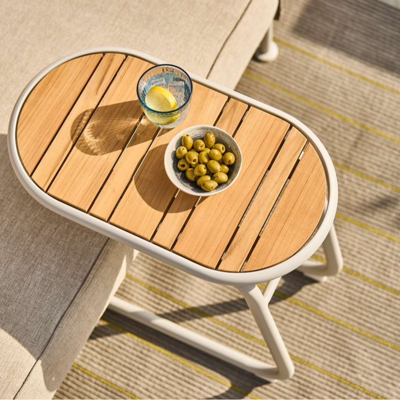 Dette smarte og praktiske sidebord er et alsidigt møbel, der komplementerer enhver af mindos kollektioner. Den holdbare teak-overflade giver et naturligt, tidløst look, samtidig med at den giver en robust og vedligeholdelsesfri mulighed i din have.