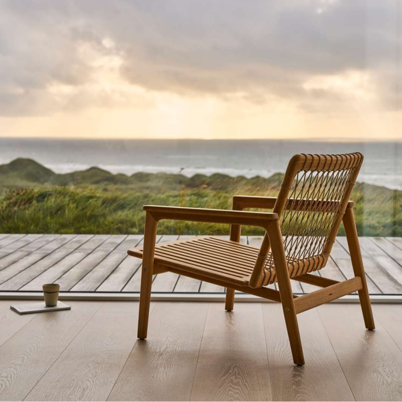 Mindo 123 loungestol forener certificeret plantageteak og vejrbestandig PE-snor i et tidløst design. Kollektionen kombinerer dansk og japansk håndværk for holdbare møbler skabt til årelang nydelse. Leveres i flad pakke med alt nødvendigt hardware til enkel montering.