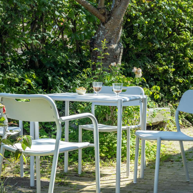 Det lille spisebord fra mindo 124 forener funktion og æstetik i en elegant form. Bordet er let, stabilt og stabelbar, og dermed perfekt til små terrasser eller caféområder. Fremstillet i slidstærkt aluminium, der modstår både regn og sol. Skabt til moderne udemiljøer med sans for design.