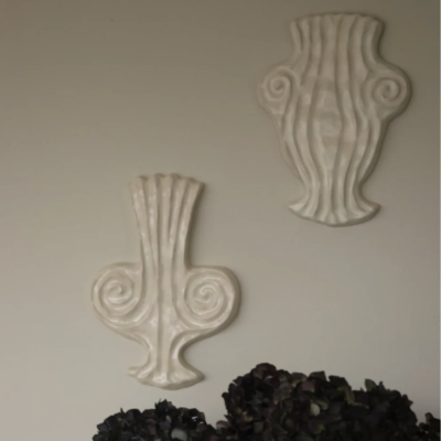 Euterpe er musikkens muse og forbindes i mytologien med klang, rytme og en afbalanceret sans for harmoni. I denne fortolkning mødes inspiration og form i et samlet udtryk, hvor den kreative idé omsættes til et konkret og sanseligt objekt. Hvert værk støbes og efterbearbejdes i hånden i glaseret stentøj med bløde variationer i antikke nuancer og er skabt med henblik på at indgå som et vægmonteret element. Muserne er alle glaserede i Antique White.