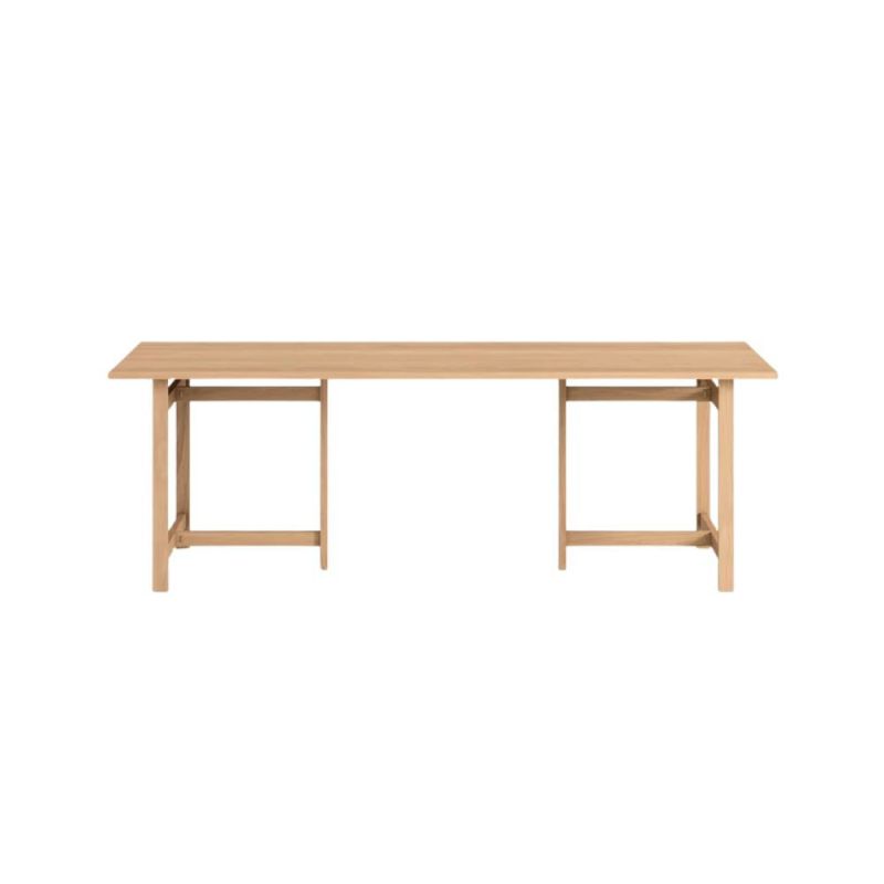 MOEBE Rectangular Dining Table er et enkelt og elegant spisebord med en solid T-rammekonstruktion og fine messingdetaljer. Bordet er FSC-certificeret, produceret i Europa og leveres flatpack for nem montering. Fås med linoleumsoverflade i rød, grøn eller mushroom samt i klassisk eg. Tilkøb op til to forlængelser én i hver ende for at udvide bordet med 20 eller 40 cm.