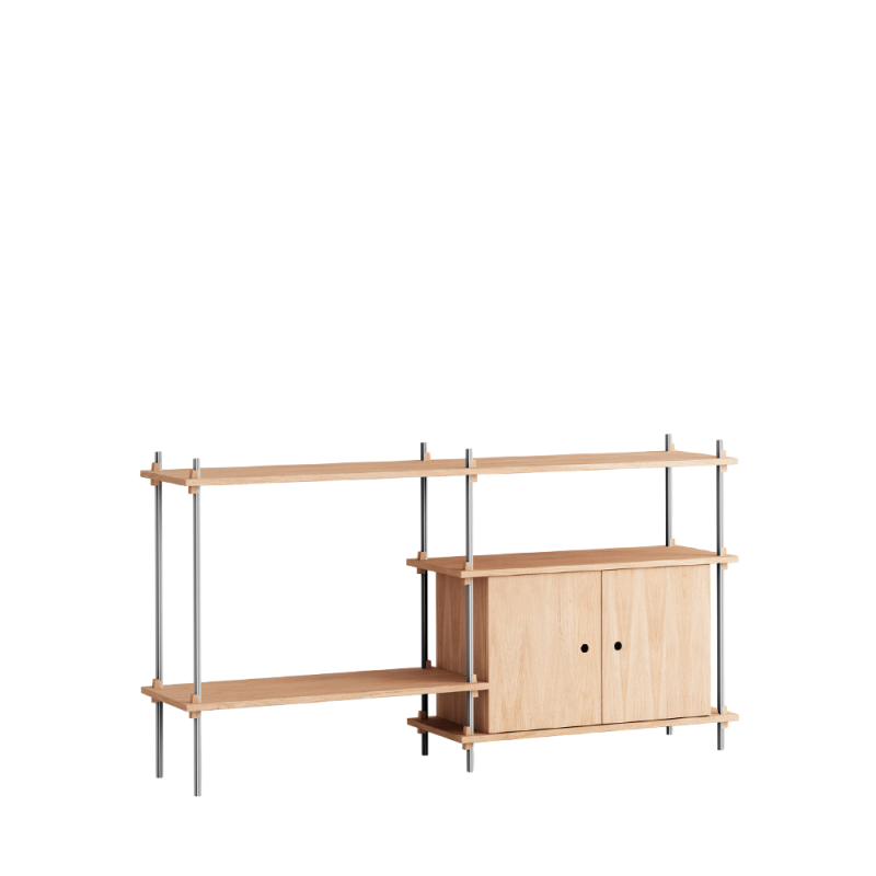 Uendeligt fleksibelt, modulopbygget og skabt til at holde hele livet. MOEBE reolsystemet er fuldt tilpasningsbart og kan altid udvides eller ændres over tid.