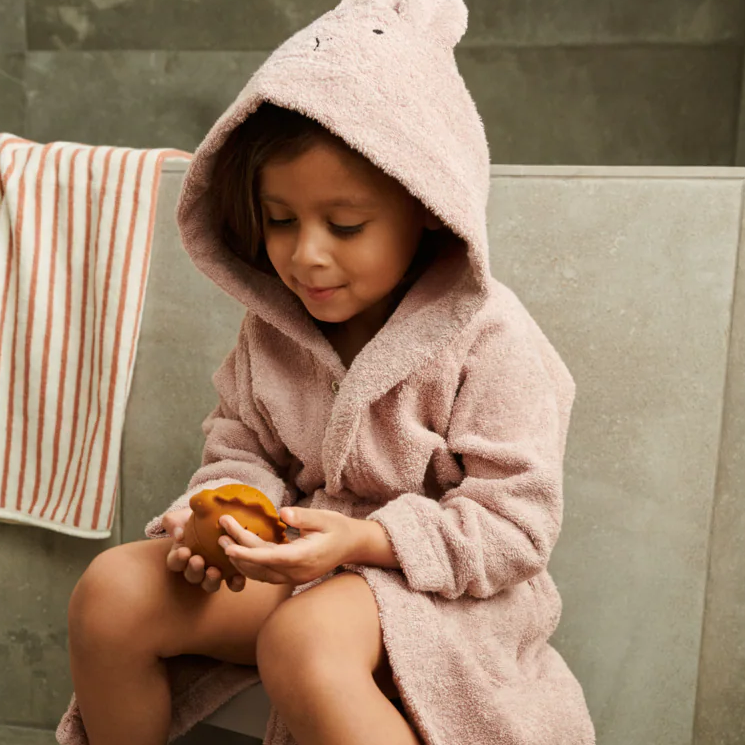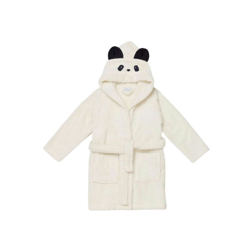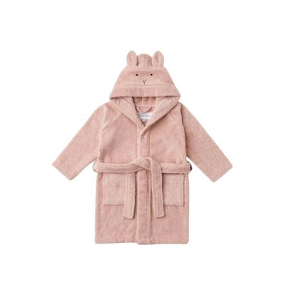 Blød badekåbe i økologisk bomuld med søde broderede dyredetaljer og ører på hætten. De praktiske trykknapper foran hjælper med at holde kåben på plads, mens den tykke kvalitet holder dit barn varm og tør efter badet.
