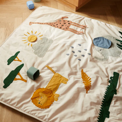 Et blødt fundament, hvor din baby kan lege og udforske verden omkring sig. De sjove dyr, klare farver og forskellige teksturer understøtter udviklingen af din babys motoriske sanser og generelle nysgerrighed. Ideelt til mavetid.