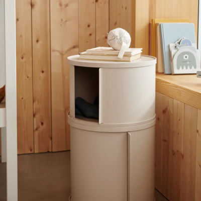 Sengebordet har et stabelbart design, så du kan tilpasse det efter jeres behov. Sengebordet er lavet af delvist genanvendte materialer og har en nem skydelåge. Et tidløst og praktiskt møbel til dit barns værelse eller en smart opbevaringsløsning til hjemmet.