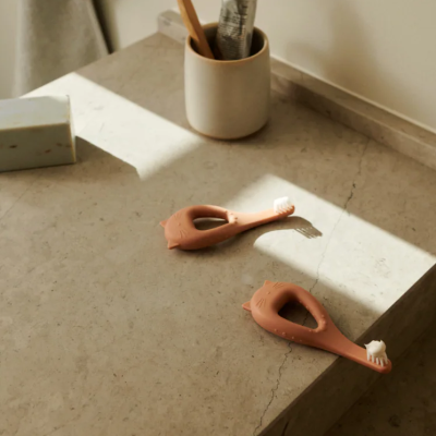Gør tandbørstning til en sjov oplevelse med vores bløde babytandbørster i silikone og nylon. Håndtagene er nemme at holde om for små hænder, og de stimulerende strukturer på overfladen giver en behagelig børsteoplevelse. Med klare farver og sjove dyredetaljer får barnet den perfekte ledsager på sin rejse mod sunde tænder.