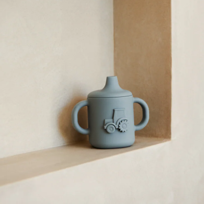 Amelio tudekappen i brudsikker silikone har et aftageligt låg med en blød drikketud, og en sød lille traktor på siden. Håndtagene giver et godt greb, så dit barn kan øve sig i at holde og vippe koppen og lære at drikke selv.